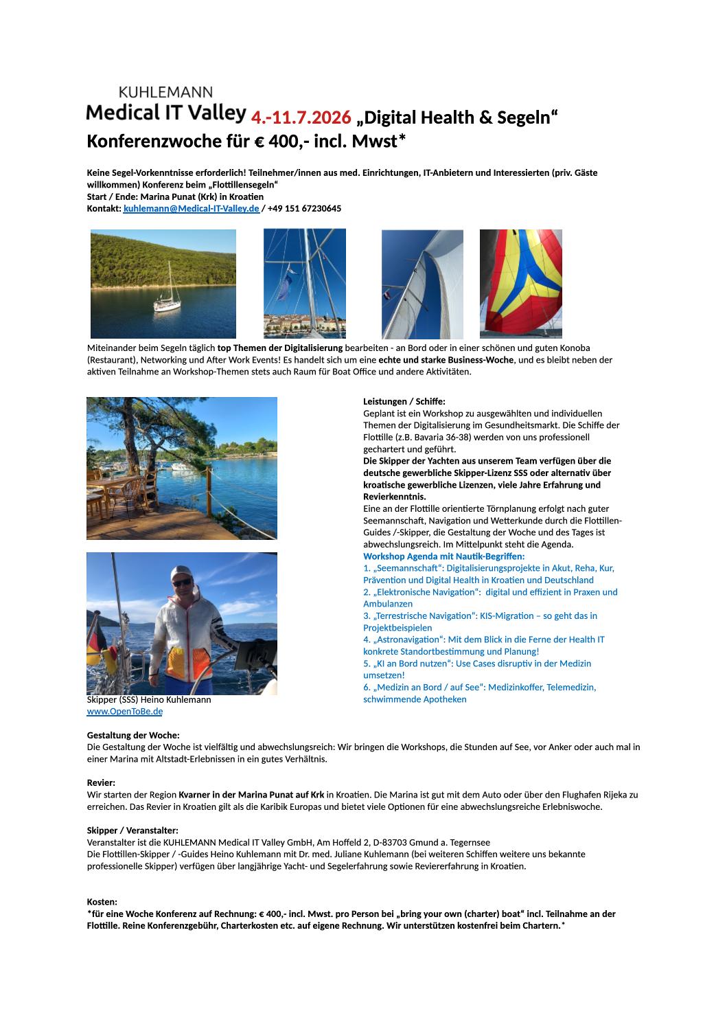 Wir gestalten Net(t)working, verbinden Gesundheit, Sport und Digitalisierung und bearbeiten gemeinsam spannende Themen. In dem Aktiv-Format veranstalten wir eine Woche Flottillensegeln!